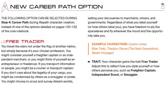 Star Trek Adventures has a new sourcebook, The 23rd Century Campaign Guide, and per usual, they included a new career path option: